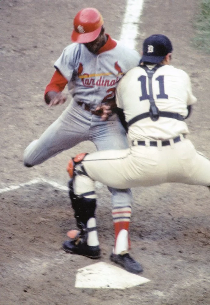 Brock reached for the plate with his left foot, colliding with Freehan as the catcher applied the tag. The home plate umpire was none other than Doug Harvey, who Whitey Herzog liked to call “God,” and not affectionately. Harvey called Brock out, as the Cardinals erupted in protest. For the rest of his life, which ended in 2020, Brock insisted otherwise.